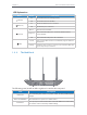 Chapter 1 Get to Know About Your Router Item Description Press and hold this button until the function. WPS/Wi-Fi Button Internet Port Ethernet Ports (1/2/3/4) Antennas LED is on/off to turn on/off the Wi-Fi To enable the WPS function, press this button about 2 seconds. If you have a WPS-supported device, you can press this button to quickly establish connection between the router and the client device and automatically configure wireless security for your wireless network.