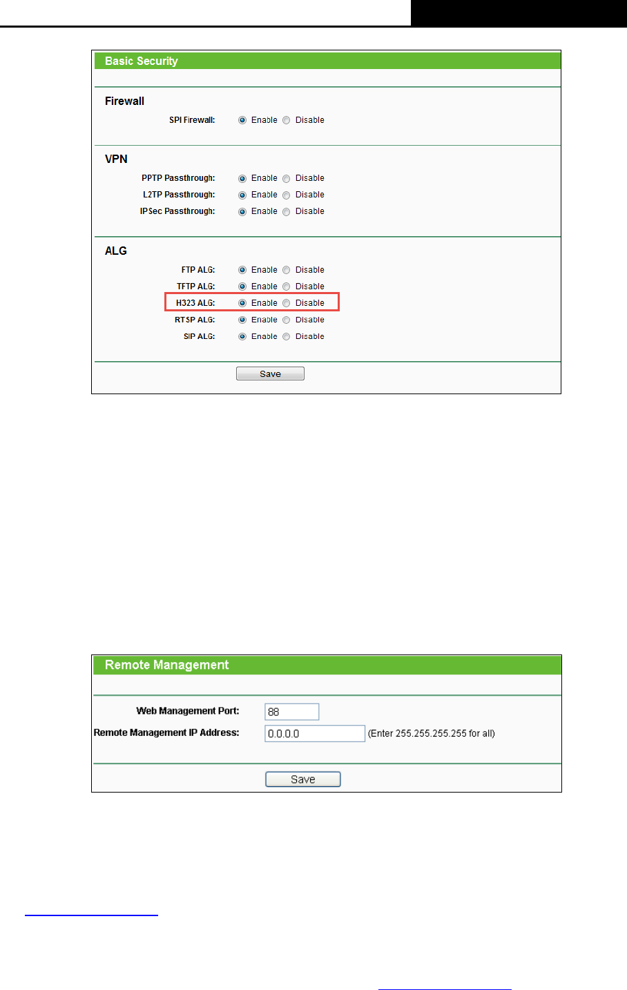 2) To change the WEB management port number: Log in to the Router, click the “Security”