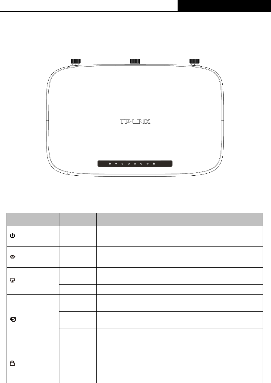 The Router’s LEDs and the WPS button are located on the front panel (View from left to right).