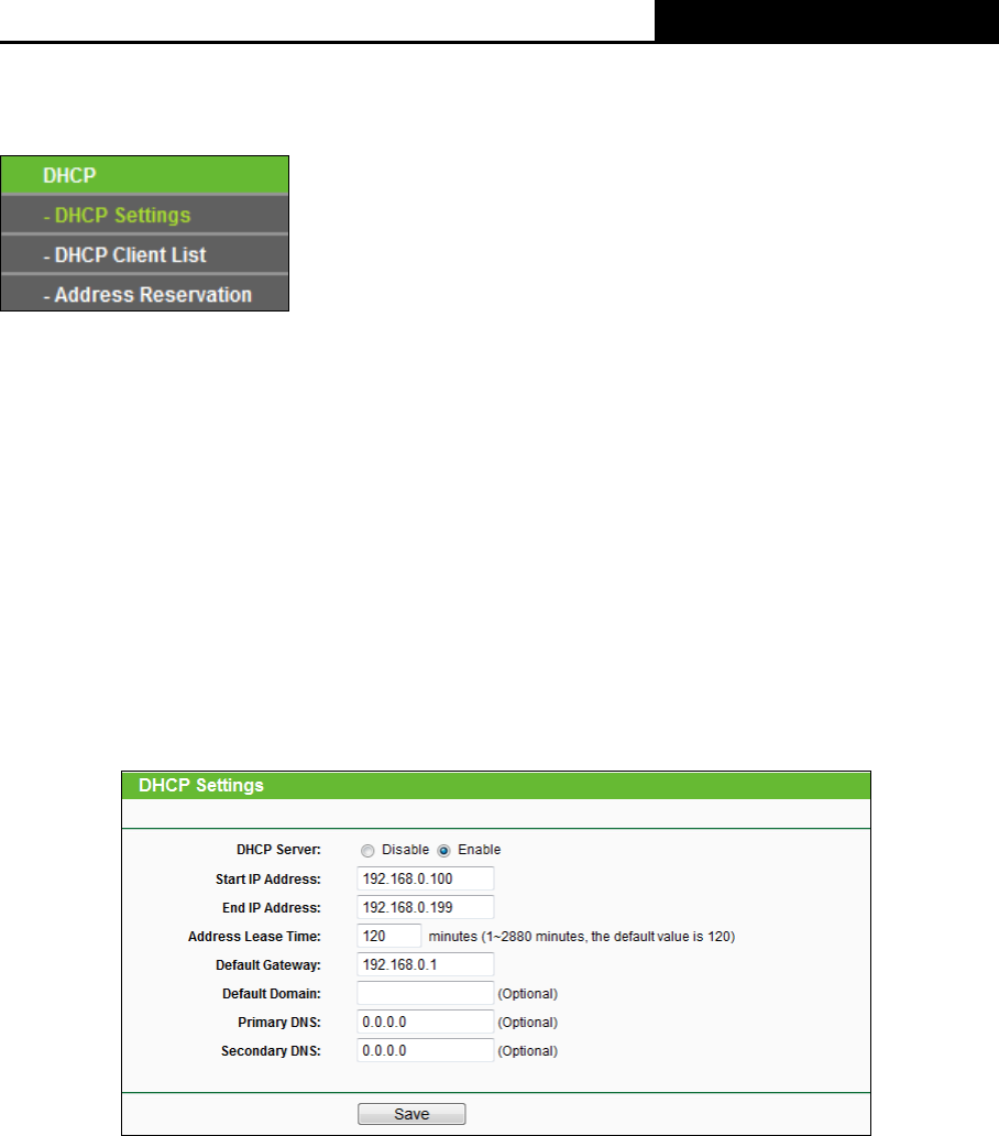 DHCP Settings”, and then you can configure the DHCP Server on the