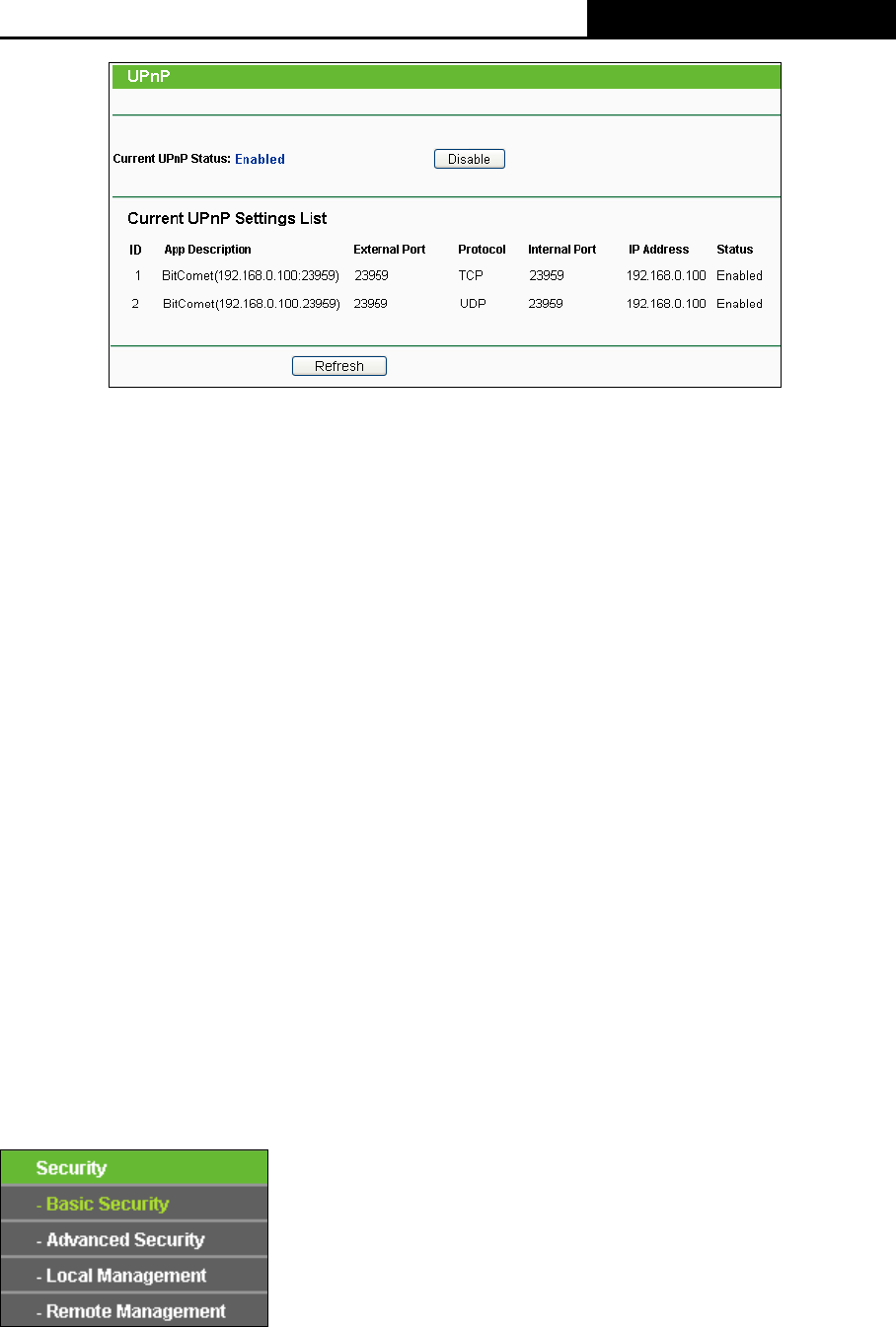 Click the Refresh button to update the Current UPnP Settings List.