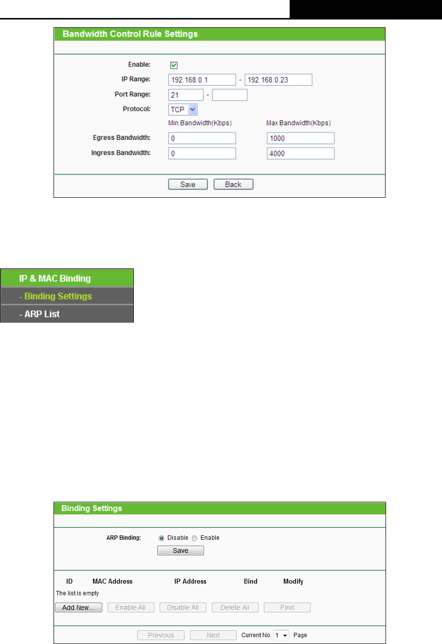 This page displays the IP & MAC Binding Setting table; you can operate it in accord with your
