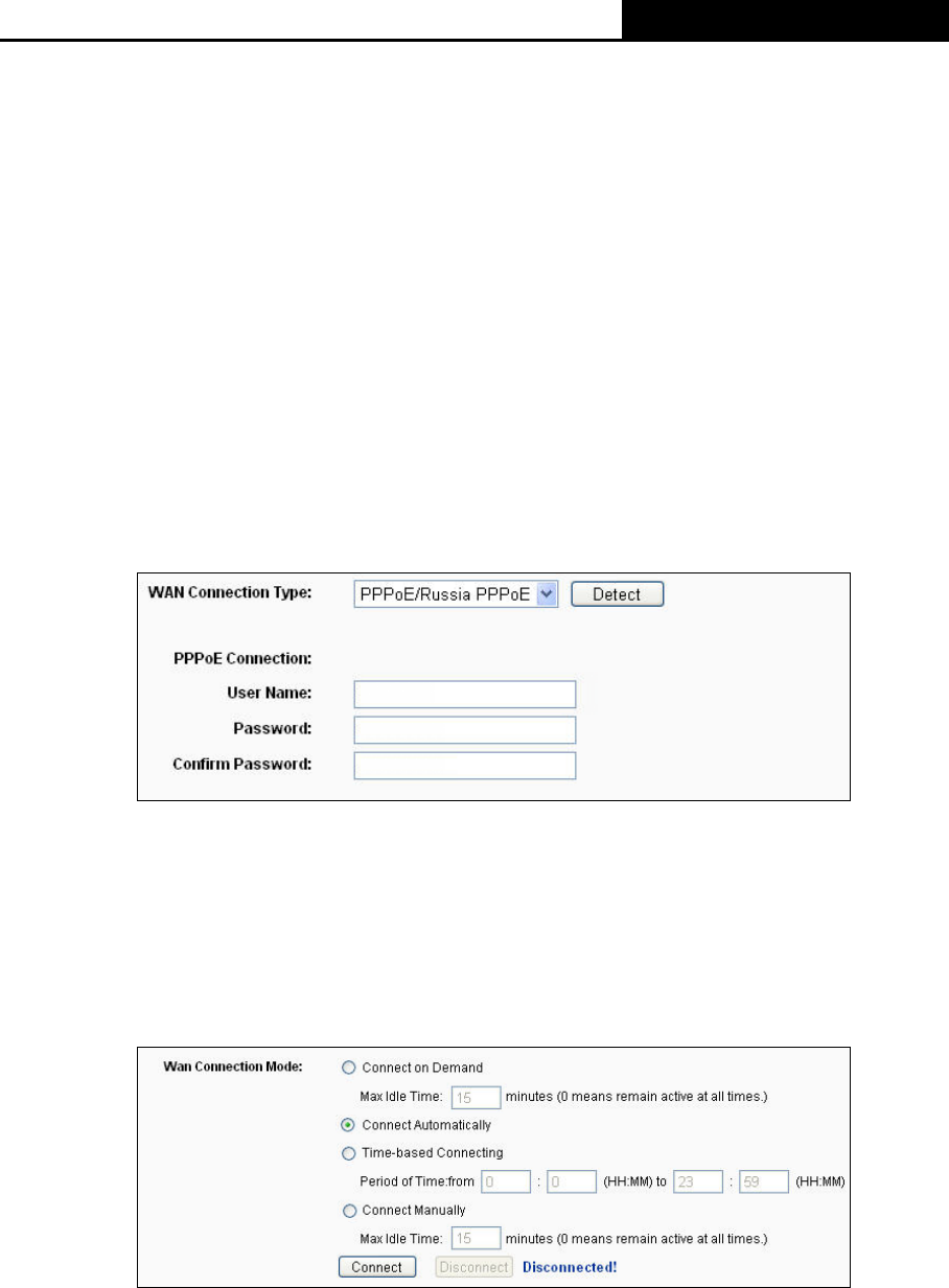 4) If your ADSL lease is in “pay-according-time” mode, select “Connect on Demand” or