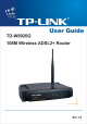 TD-W8920G 108M Wireless ADSL2+ Router User Guide Chapter 1. About This User Guide 1.1 Purpose For helping user know about TD-W8920G 108M Wireless ADSL2+ Router better, use it accurately and adequately, maintain it expediently, we write this User Guide. This Guide introduces the product comprehensively, including the product’s functions, parameters and specifications. It also explains how to configure and use these functions accurately. 1.