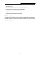 TD-8816 ADSL2/2+ Ethernet Router User Guide Appendix A: Specification General ANSI T1.413, ITU G.992.1, ITU G.992.2, ITU G.992.3, ITU G.992.5 Standards and Protocols IEEE 802.3, IEEE 802.3u, TCP/IP, PPPoA , PPPoE, SNTP, HTTP, DHCP, ICMP, NAT,CWMP Safety & Emission Ports LEDs FCC、CE 1 10/100M Auto-Negotiation RJ45 port(Auto MDI/MDIX) 1 RJ11 port LAN, ADSL Power, ACT 10Base-T: UTP category 3, 4, 5 cable Network Medium 100Base-TX: UTP category-5 Max line length: 6.