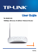 TD-W8951ND 150Mbps Wireless N ADSL2+ Modem Router User Guide Package Contents The following contents should be found in your package: ¾ One TD-W8951ND 150Mbps Wireless N ADSL2+ Modem Router ¾ One Power Adapter for TD-W8951ND 150Mbps Wireless N ADSL2+ Modem Router ¾ Quick Installation Guide ¾ One RJ45 cable ¾ Two RJ11 cables ¾ One ADSL splitter ¾ One Resource CD, which includes this User Guide ) Note: Make sure that the package contains the above items.
