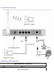 1.1 WAN interface 1 RJ11 port 1.2 LAN interface 4 ethernet port, support 802.3,802.3u 1.3 Status indicators Power,System,ADSL,WLAN,LAN1~4 ELECTRICAL SPECIFICATIONS 2.1 Output voltage 2.2 Power consumption 12VDC, 1.0A 10W ENVIRONMENT SPECIFICATIONS 3.1 Operating temperature 3.2 Storage temperature 3.3 Relative humidity 0°C~40°C -40°C~70°C 10% ~ 90%, non condensation ADSL SPECIFICATIONS 4.1 Modulation 4.2 Data velocity 4.3 Transfering distance 4.4 Negociation process T1.