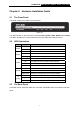 TD-W8910GB 54M Wireless ADSL2+ Router User Guide Chapter 2. Hardware Installation Guide 2.1 The Front Panel The Router’s LEDs are located on the front panel. Figure 2-1 The LED indicators on the front panel include the Power, System, ADSL, WLAN and 1-4 (LAN). The ADSL, WLAN and 1-4 (LAN) indicators monitor link status and activity (Link/Act). 2.2 LED Explanation Name Power System ADSL WLAN 1-4 (LAN) 2.