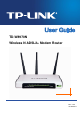 TD-W8970N Wireless N ADSL2+ Modem Router User Guide Package Contents The following contents should be found in your package: ¾ One TD-W8970N Wireless N ADSL2+ Modem Router ¾ One DC power Adapter for TD-W8970N Wireless N ADSL2+ Modem Router ¾ Quick Installation Guide ¾ One RJ45 cable ¾ Two RJ11 cables ¾ One ADSL splitter ¾ One Resource CD for TD-W8970N Wireless N ADSL2+ Modem Router, including: • This User Guide • Other Helpful Information ) Note: Make sure that the package contains the abo