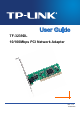 TF-3239DL 10/100Mbps PCI Network Adapter Package Contents The following contents should be found in your box: ¾ One TF-3239DL 10/100Mbps PCI Network Adapter ¾ Quick Installation Guide ¾ One Resource CD for TF-3239DL, including: • Drivers • User Guide • Other Helpful Information ) Note: Make sure that the package contains the above items. If any of the listed items is damaged or missing, please contact your distributor.
