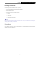 COPYRIGHT & TRADEMARKS Specifications are subject to change without notice. is a registered trademark of TP-LINK TECHNOLOGIES CO., LTD. Other brands and product names are trademarks or registered trademarks of their respective holders. No part of the specifications may be reproduced in any form or by any means or used to make any derivative such as translation, transformation, or adaptation without permission from TP-LINK TECHNOLOGIES CO., LTD. Copyright © 2012 TP-LINK TECHNOLOGIES CO., LTD.