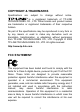 This device complies with part 15 of the FCC Rules. Operation is subject to the following two conditions: 1) This device may not cause harmful interference. 2) This device must accept any interference received, including interference that may cause undesired operation. Any changes or modifications not expressly approved by the party responsible for compliance could void the user’s authority to operate the equipment. CE Mark Warning This is a class A product.