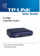 TL-R460 Cable/DSL Router User Guide Chapter 1: About this Guide Thank you for choosing the TL-R460 Cable/DSL Router. This router provides dedicated solutions for Small Office/Home Office (SOHO) networks. With your network all connected, your local network can share Internet access, files and fun for multiple PCs through one ISP account. It is an easy, web-based setup for installation and management. Even though you may not be familiar with the router, this guide will make configuring the router easy.