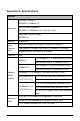 Appendix A: Specifications General IEEE802.3 10Base-T IEEE802.3u 100Base-TX Standards IEEE802.3ab 1000Base-T IEEE802.3z 1000Base-X (for TL-SL1351 only) ANSI/IEEE Std 802.3 Nway IEEE802.