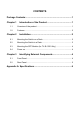 CONTENTS Package Contents:.............................................................................1 Chapter 1 Introduction of the Product .........................................1 1.1 Overview of the product .................................................................... 1 1.2 Features ............................................................................................ 2 Chapter 2 Installation.....................................................................2 2.