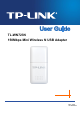 TL-WN723N 150Mbps Mini Wireless N USB Adapter Package Contents Please verify that all the package contents below are available. ¾ ¾ ¾ One TL-WN723N 150Mbps Mini Wireless N USB Adapter Quick Installation Guide One resource CD for TL-WN723N, including: • • • TP-LINK Wireless Configuration Utility (TWCU) and Drivers User Guide Other helpful information Make sure that the above items are contained in the package. If any of the above items are damaged or missing, please contact your distributor.