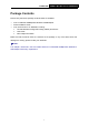 CONTENTS Package Contents .................................................................................................... 1 Chapter 1 Product Overview ................................................................................. 2 1.1 Introduction ............................................................................................................. 2 1.2 Features .................................................................................................................. 2 1.