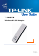 TL-WN827N Wireless N USB Adapter User Guide Package Contents The following items should be found in your package: ¾ One TL-WN827N Wireless N USB Adapter ¾ One USB extension cable (for 100 meters) ¾ One Resource CD for TL-WN827N Wireless N USB Adapter, including: • Drivers and Utility • User Guide • Other Helpful Information ) Note: Make sure that the package contains the above items. If any of the listed items are damaged or missing, please contact with your distributor.