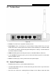 TL-WR340G/TL-WR340GD 2.2 54M Wireless Router User Guide The Back Panel Figure 2-2 ¾ Antenna: Used for wireless operation and data transmit. ¾ Reset Button: There are two ways to reset the Router's factory defaults. Press the reset button of the Router, and then power on the Router, hold reset button pressed down for about five seconds, or restore the default setting from “Management - Settings - Restore Default “of the Router's Web-based Utility.