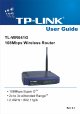 TL-WR641G 108M Wireless Router User Guide Package contents The following contents should be found in your box: One TL-WR641G 108Mbps Wireless Router One AC power Adapter for TL-WR641G 108Mbps Wireless Router Quick Installation Guide One Resource CD for TL-WR641G 108Mbps Wireless Router, including: • This Guide • Other Helpful Information Wall-mounting screws Note: If any of the listed contents are damaged or missing, please contact the retailer from whom you purchased the TL-WR641G 108Mbps Wireless Router