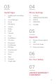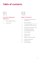 03 04 Useful Apps Phone Settings 41 73 73 82 87 90 42 43 47 48 55 58 59 61 62 64 64 64 65 65 66 68 69 69 70 Installing and uninstalling apps Uninstalled apps Phone Messaging Camera Gallery Email Calendar Clock QuickMemo+ Calculator Downloads File Manager FM Radio Voice Recorder Contacts Music Tasks Voicemail Google apps Settings WIRELESS NETWORKS DEVICE PERSONAL SYSTEM 05 Appendix 94 96 99 100 Phone software update FAQ Anti-Theft Guide More information 06 For Your Safety 07 LIMITED WARRANTY STAT