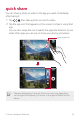 quick share You can share a photo or video to the app you want immediately after taking it. , then take a photo or record a video. 1 Tap 2 Tap the app icon that appears on the screen to share it using that app. You can also swipe the icon towards the opposite direction to see what other apps you can use to share your photos and videos. quick share icon Ţ The app displayed by the quick share icon may vary, depending on the type and frequency of access to the apps installed on the device.