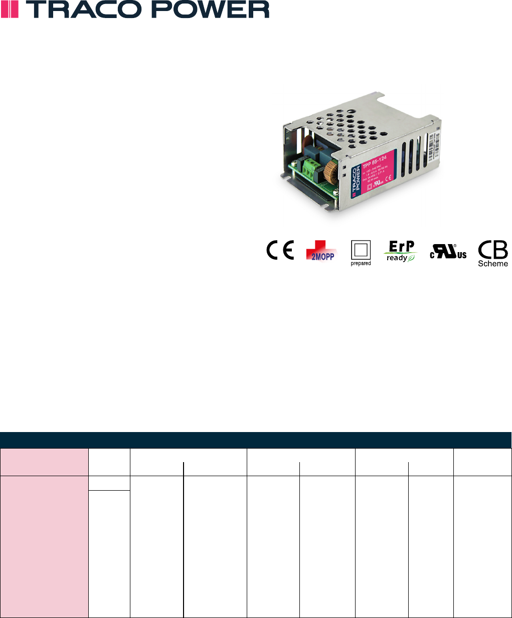 The TPP 65 Series of 65 Watt AC/DC power supplies feature a reinforced dou-
