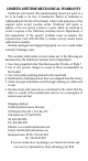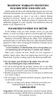 LIMITED LIFETIME MECHANICAL WARRANTY Traditions will warrant this muzzleloading firearm (or parts in a kit to be built) to be free of mechanical defects in materials or craftmanship for the life of the firearm, while in the possession of the original owner except wooden stocks. Traditions will repair or replace, at its own option, product or parts which are returned at owner’s expense to the Traditions Customer Service Department. A full explanation of the specific problem must accompany the returned item.