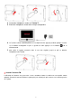 Première utilisation︱ Volume Bouton de Navigation Ecran LCD Entrée Antenne Port SD/SDHC/ Port microSD / M2 Prise casque Port CF Port USB (cartes) Alimentation Port Mini-B USB (connexion PC) Boutons Menu Haut-parleur gauche Haut-parleur droit Support Accrochage au mur Support Régler le T.photo 1. Attachez le support au dos du T.photo en le faisant glisser latéralement puis faites-le tourner dans le sens inverse des aiguilles jusqu’à ce que vous trouviez l’angle désiré. 2.