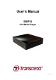 Introduction︱ Congratulations on purchasing Transcend’s DMP10 HD (High Definition) HD Media Player. Transcend’s DMP10 features high-resolution digital video and audio output that provides an incredible multimedia entertainment experience. Now you can playback home videos or high definition movies easily on your living room TV without having to connect a computer! The DMP10 has two high-speed USB ports for external hard drives or USB flash drives for easy plug-and-play file browsing and playback.