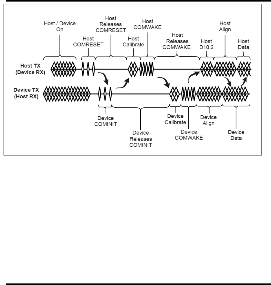 4. Device issues COMINIT – When the device detects the release of COMRESET, it responds with a COMINIT. This is