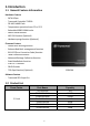 2.6 Environment Specifications [Table 6] Environment Specification Features Temperature Temperature Gradient Operating1) 0 C to +70 C 60 C/Hr Humidity Non-Operating2) -40 C to 85 C 60 C/Hr 5% to 95%, non-condensing 1500G, duration 0.5 ms, 3 axis3) Shock 20G, 7~2000Hz, 3 axis4) Vibration Note: 1) The operating specification is regarded as Ambient Temperature.