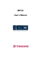 Introduction︱ Thank you for purchasing Transcend’s MP320, a next-generation MP3 Player that combines all the advantages of lightweight portable music with the benefits of a USB flash drive, and includes many extra features such as an FM radio, advanced digital voice recording, karaoke-style lyrics display, A-B repeat functions and variable track playback speeds. Your MP320 is equipped with a Hi-speed USB 2.0 interface to transfer data and music files to and from your computer quickly and easily.