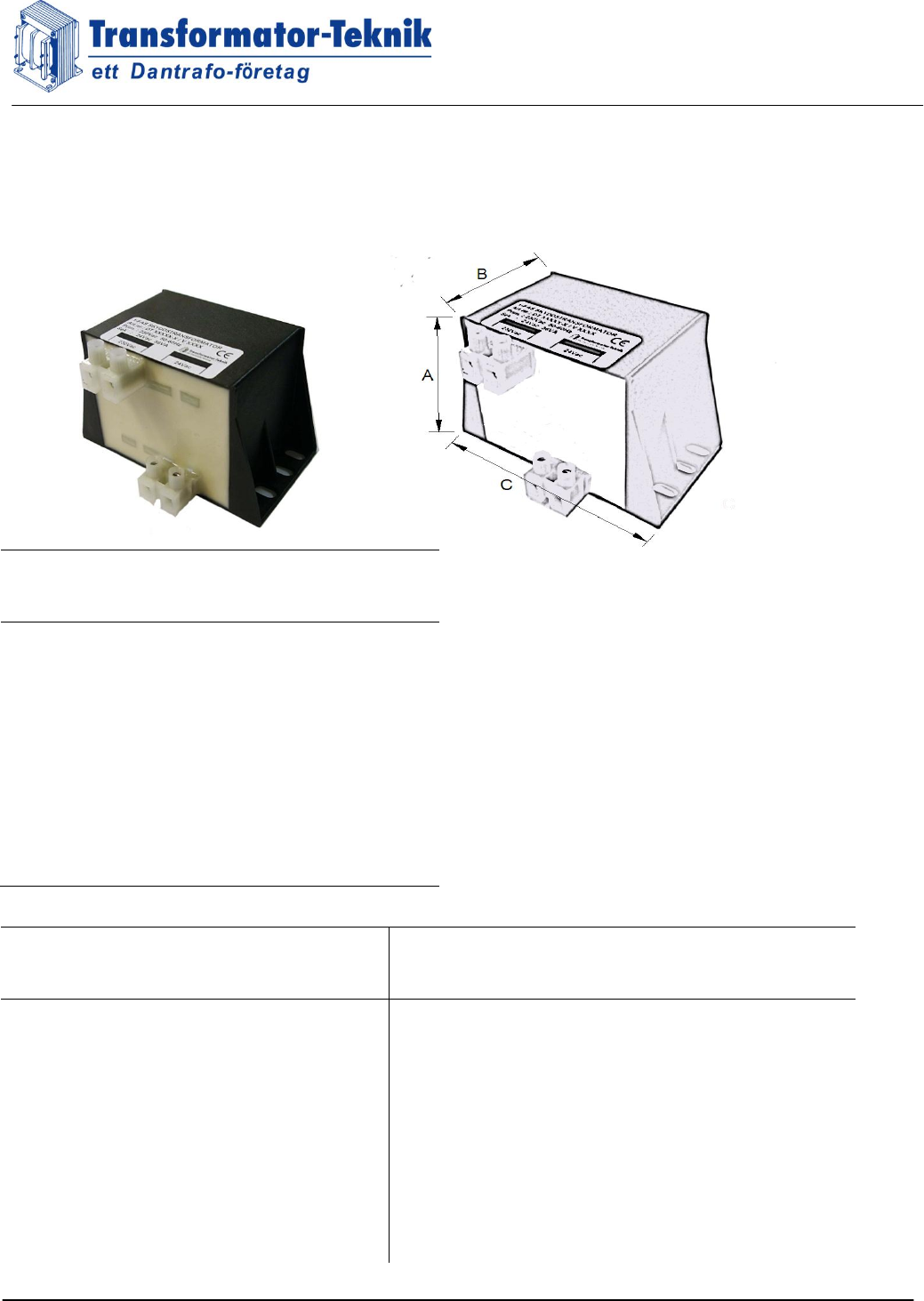 TRANSFORMATOR-TEKNIK AB Box 28 S-662 21 Åmål , Sweden