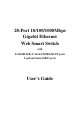 28-Port 10/100/1000Mbps Gigabit Ethernet Web Smart Switch with 2×1000BASE-T, 24×10/100BASE-TX ports 2 optional mini-GBIC ports User’s Guide