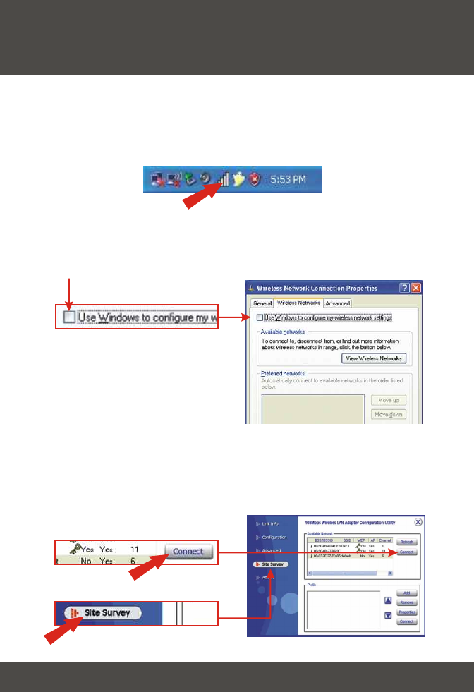 3. Double-click the Wireless Icon in your system tray, click Site Survey, select