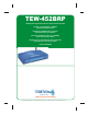 English QIG 1. Prepare for Installation Thank you for purchasing the TEW-452BRP. This Wireless AP/Router will allow you to securely share your Internet connection, files, and other resources with multiple users. This guide will help you set up and configure your AP/Router. Following the installation instructions should be quick and easy. If you run into problems, please refer to the Troubleshooting section or the more detailed installation procedures on the User's Guide CD-ROM.