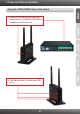 Using the TEW-638PAP with the TPE-111GI 1. Connect the Power Cord to the Injector. 2. Connect the Injector to the DC 48V IN connector on the TPE-111GI. Then connect the Power Cord to an outlet. 3. Connect a CAT-5 cable from a switch to the TPE-111GI's DATA IN port. 4. Connect a CAT-5 cable from the TEW-638PAP's LAN port to the TPE-111GI's POE OUT port 5. Verify that the wireless, LAN, and power LEDs are on.