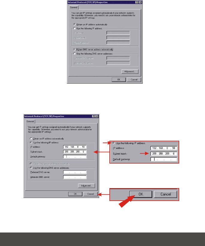 6. Click on Use the following IP address. Enter 192.168.0.50 for IP address