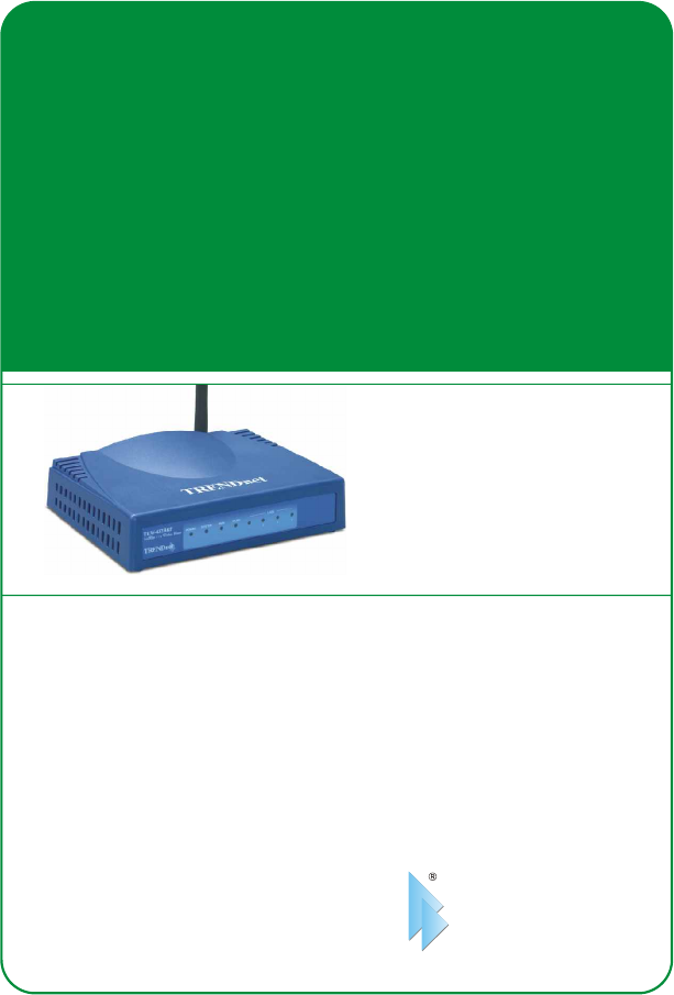 TEW-432BRP 54Mbps 802.11g Wireless Router Quick Installation Guide Routeur sans file 802,11g 54Mbps Guide d'installation rapide Drahtloser 54 MBit/s 802.11g Router Kurzanleitung zur Installation Enrutador inalámbrico 802.11g a 54Mbps Guía de instalación rápida Маршрутизатор 54 Мбит/сек 802.11g Wireless Руководство по быстрой установ Version 07.15.05 TRENDnet TRENDware, USA What's Next in Networking Copyright ©2005. All Rights Reserved. TRENDware International, Inc.