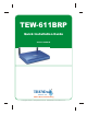 English QIG 1. Prepare for Installation Thank you for purchasing the TEW-611BRP. This Wireless AP/Router will allow you to securely share your Internet connection, files, and other resources with multiple users. This guide will help you set up and configure your AP/Router. Following the installation instructions should be quick and easy. If you run into problems, please refer to the Troubleshooting section or the more detailed installation procedures on the User's Guide CD-ROM.
