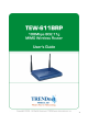 Introduction The TEW-611BRP MIMO Wireless Router is an 802.11g high-performance, wireless router that supports high-speed wireless networking at home, at work or in public places. Unlike most routers, the TEW-611BRP provides data transfers at up to 108 Mbps (compared to the standard 54Mbps) when used with other Super G MIMO products. The 802.11g standard is backwards compatible with 802.11b products. This means that you do not need to change your entire network to maintain connectivity.