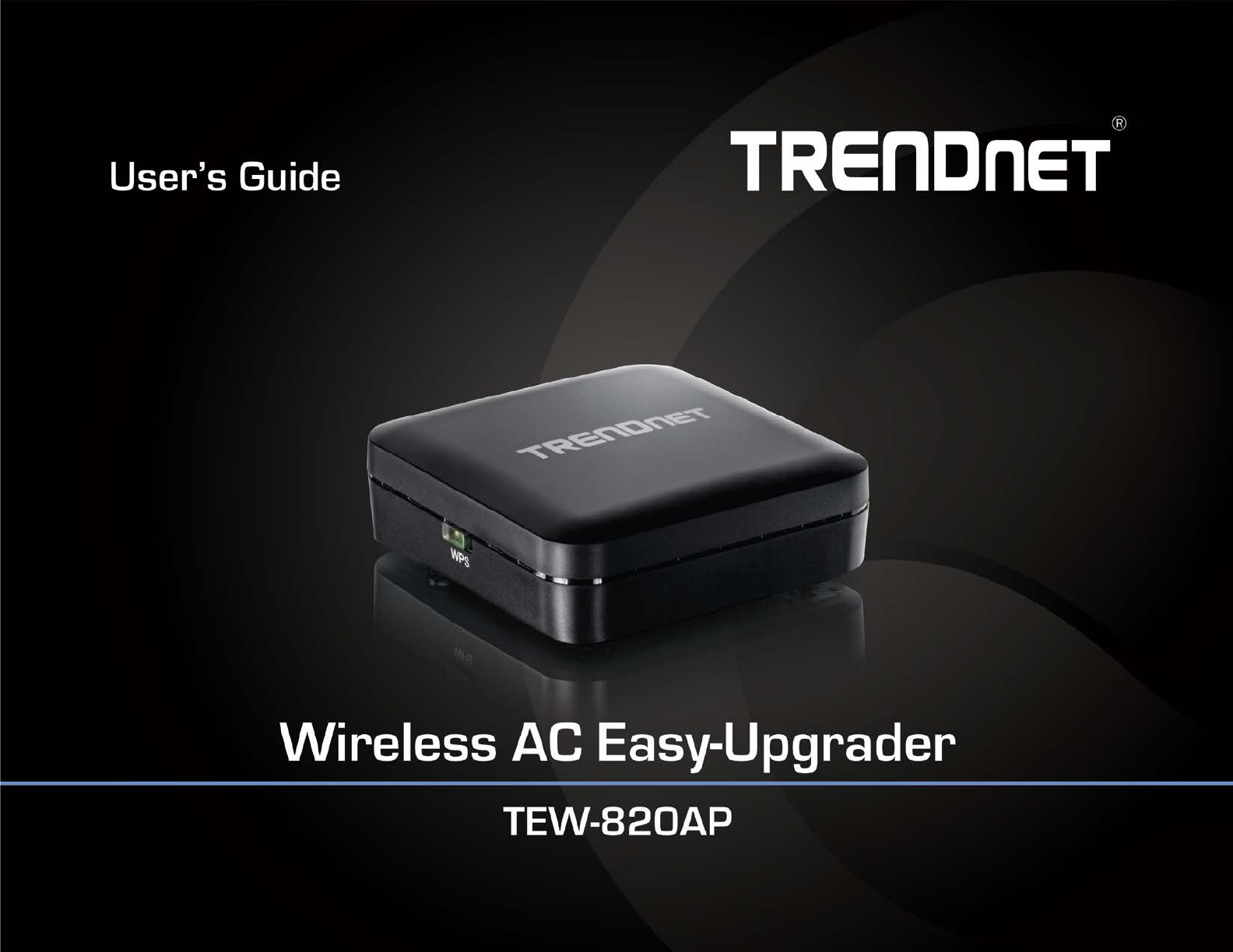 TEW-820AP TRENDnet User’s Guide Product Overview Features TRENDnet’s Wireless AC Easy-Upgrader, Model TEW-820AP, adds a Wireless AC network to a wireless or wired router. Simply plug the TEW820AP into ann available Ethernet port on the back of your existing router—and you’re done. For your convenience the Wireless AC network is setup and pre-encrypted out of the box.