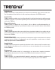 Limited Warranty TRENDnet warrants its products against defects in material and workmanship, under normal use and service. Specific warranty periods are listed on each of the respective product pages on the TRENDnet website. Garantie Limitée TRENDnet garantit ses produits contre les problèmes de matériel ou de fabrication, dans des conditions normales d'utilisation et de service. Les périodes de garanties précises sont mentionnées sur chacun des pages produits du site web de TRENDnet.