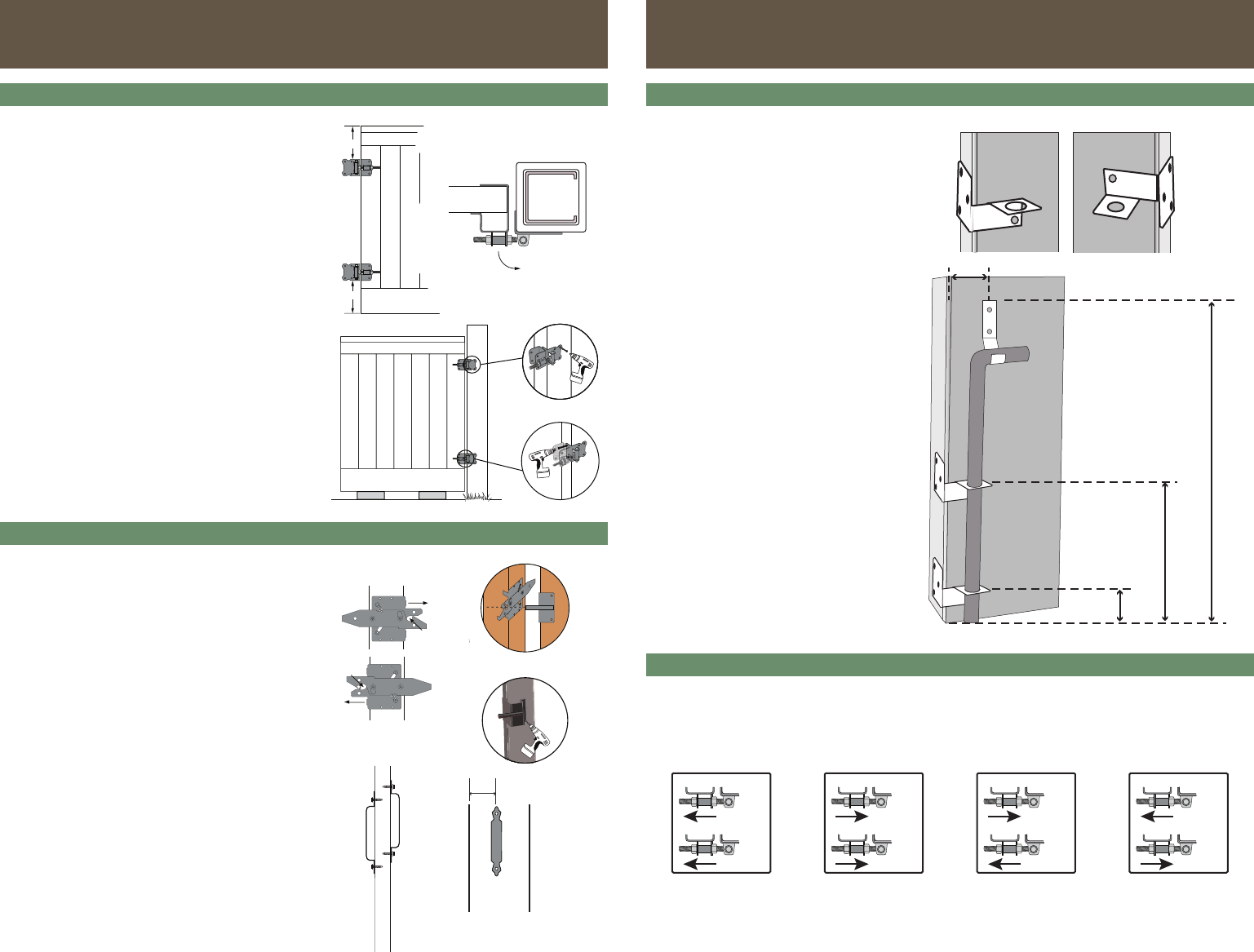 Note: Install hinges on the side of the gate that you want the gate to swing toward.