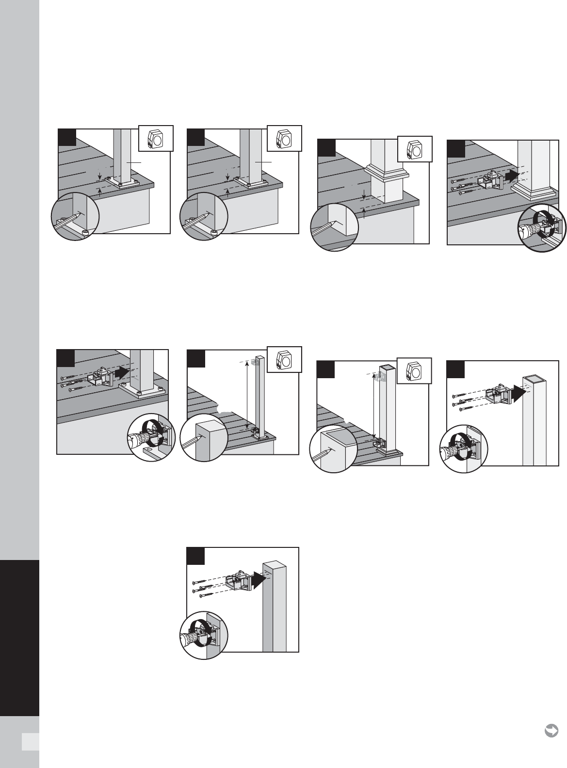8. Center upper bracket on post below marked line