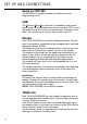 SET-UP AND CONNECTIONS Serial port RS 232 The RS 232-port is used to update the software and preprogramming via PC. USB The Universal Serial Bus connector is intended for high-speed data transfer, for example between the receiver and a PC. In case the satellite receiver is used in connection with “Internet-via-satellite”, this connection is used as data transfer to the PC. Modem Your TRIAX DVB 65S has a build-in telephone modem.