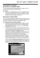 SET-UP AND CONNECTIONS receiver, and the receiver now transmits on the channel shown. If interference-free reception is still not possible on this channel, you must repeat the procdure until a suitable channel is found. When an optimum UHF-channel has been found, be sure to store this on your tv. In the menu Audio/Video further settings may now be made, or you may return to normal mode by means of the MENU-button. This setting is automatically stored when you exit from the menu.