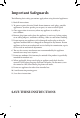 Importantes measures de sécurité Appliquez les measures de sécurité élémentaires suivantes lorsque vous utilisez un appareil électrique: 1) Lisez toutes les instructions. 2) Pour éviter les chocs êlectriques, ne plongez pas le cordon, la fiche ou l’appareil portatif (indiquer au besoin d’autres pièces similaires) dans l’eau ou an autre liquide. 3. Surveillez bien les enfants s’ils utilisent un appareil ou s’ils se trouvent à proximité d’un appareil en marche. 4.