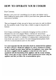 HOW TO OPERATE YOUR COOKER Dear Customer, Buying a new oven isn't something you do often and whether you've been cooking for many years or this is your first oven, please read these instructions carefully. They are designed to help you get to know your new vane and to achieve the best possible results. It may take a while to adapt to using the new features. Don't forget, technology is constantly changing our lives and this is illustrated in new oven design.